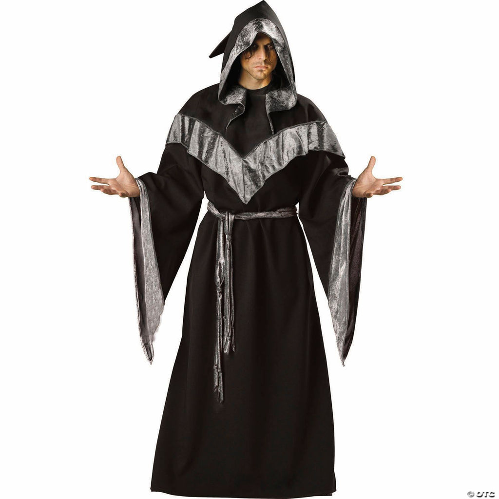 This dark sorcerer costume look for adults comes complete with a black robe, hood and waist sash.brbr