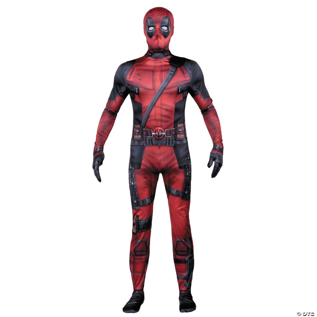 • CREATE GROUP OR COUPLE COSTUMES: Coordinate costumes with friends or your significant other to create fun and memorable group or couple costumes, showcasing your bond and enhancing your Halloween experience together.br • PARTICIPATE IN COSPLAY EVENTS: Cosplay at conventions or events enables you to immerse yourself in fandom communities, showcasing your craftsmanship, and celebrating your favorite characters alongside fellow enthusiasts.br • SPREAD JOY AND LAUGHTER: Opt for humorous, pun-filled, or outrageous costumes to bring smiles and laughter to everyone you encounter on Halloween, adding an element of joy and lightheartedness to the holiday.br • CREATE INSTAGRAM-WORTHY LOOKS: Flaunt your creativity and fashion sense by wearing visually stunning costumes that are sure to impress both in person and on social media, allowing you to curate an aesthetically pleasing Halloween feed.br br Product Description:br Break the fourth wall with the MARVEL Adult Deadpool Zentai Suit. Featuring a printed design of Wade Wilson's iconic suit, this long-sleeved form-fitting jumpsuit is made of two way stretch spandex. It includes invisible zippers in the front and back plus wrist openings for hand access. It also includes a full spandex overhead mask. All Zentai suits are made from high-quality spandex with high-resolution prints. Jazwares Costume Play creates costumes for Halloween and everyday play that are made for every member of the family. Officially licensed MARVEL product from Jazwares.br br Includes: br (1) Adult Deadpool Spandex Zentai Jumpsuitbr (1) Adult Deadpool Spandex Overhead Mask