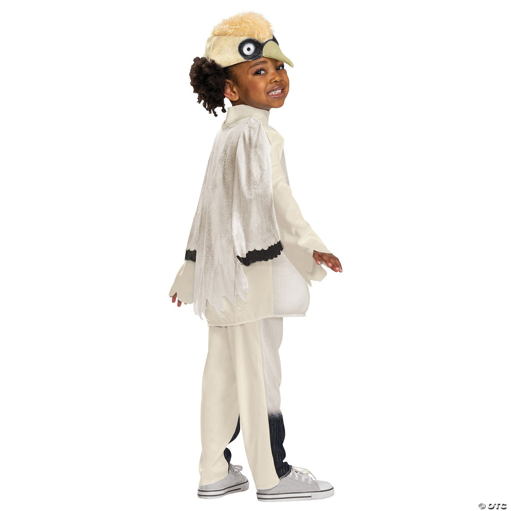 Your little one can pretend to be Scuttle, the scatterbrained seagull, from the new Disney movie, The Little Mermaid! The Scuttle costume includes a white top with printed fur details and has long sleeves with scalloped hems. It comes with a matching detachable wing-like cape, pants with printed fur accents, and cute seagull headpiece with a faux fur mohawk and a soft beak at the forehead. Open-faced hood is lightweight and comfortable to wear. Made of 100% polyester. Spot clean with damp cloth, air dry. Toddler Small fits size 2T. © Disney