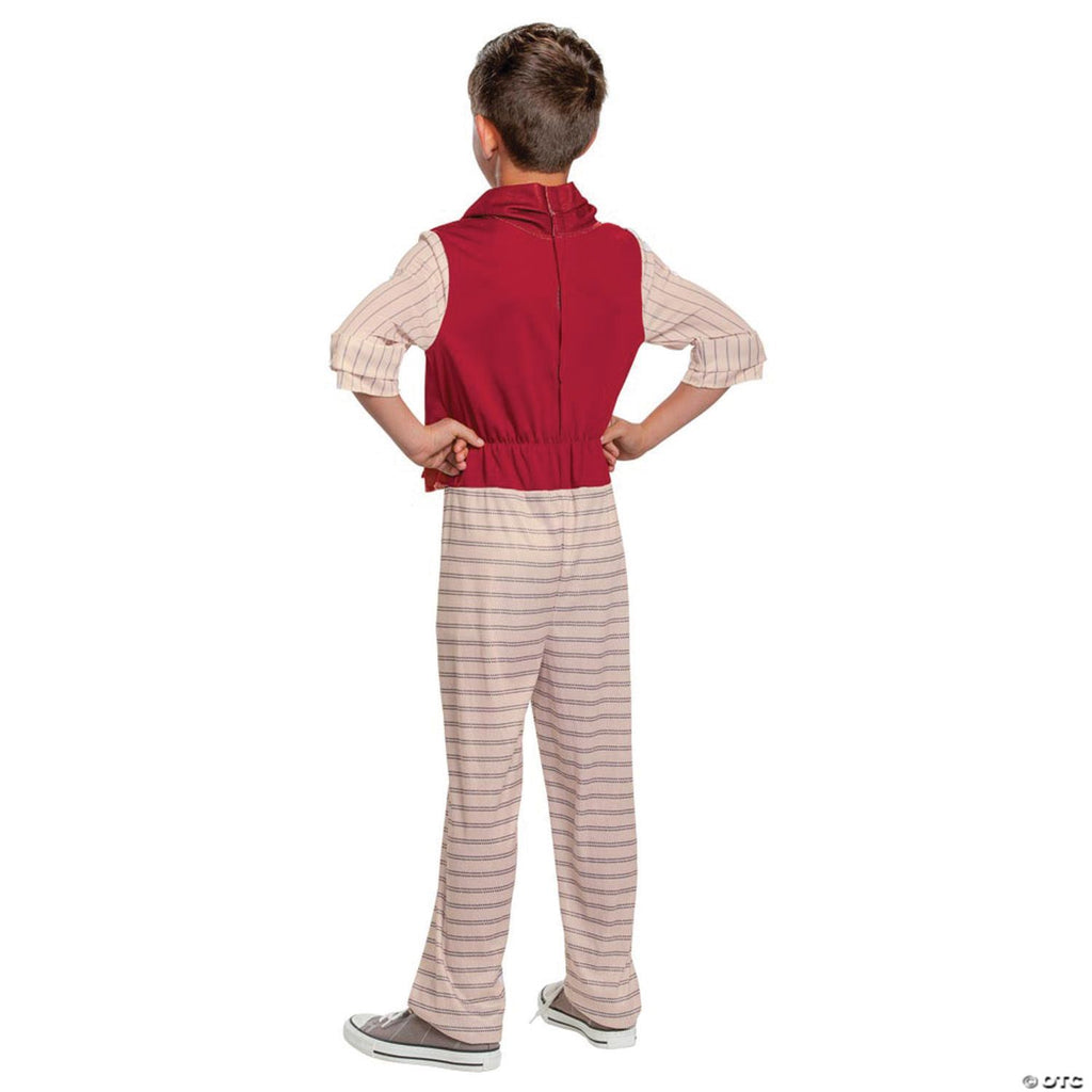 Your child will be ready to take a magic carpet ride when they dress up in the Child’s Aladdin Costume. Inspired from the Disney Aladdin Live-Action Movie, become the hero and win the heart of Princess Jasmine. The Disney Aladdin Classic Child Costume features printed red vest that goes to the waist, vertical-striped white top with blue at the midriff, and horizontal-striped white pants. Shoes not included. Care Instructions: Hand Wash. Materials: 100% Polyester. This is an officially licensed Disney Aladdin costume. © Disney