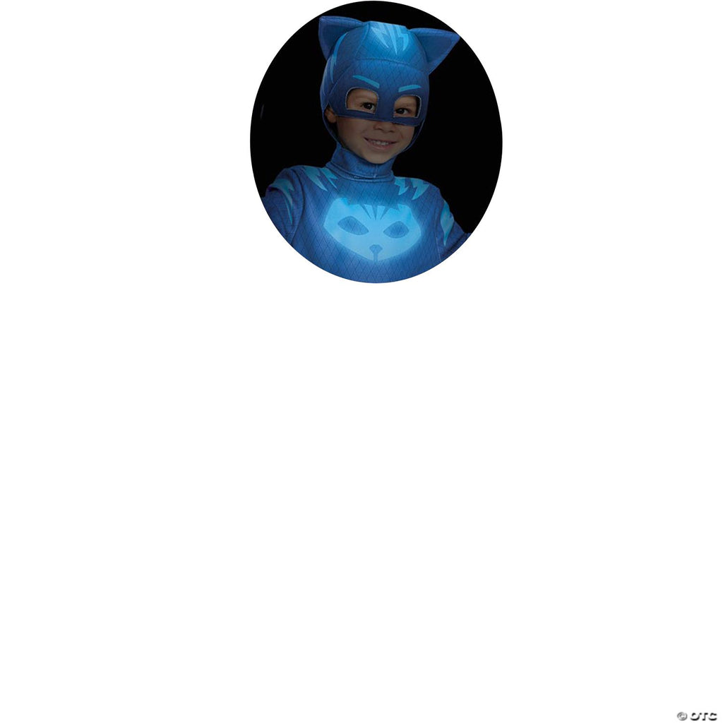 Your child can dream like a superhero with these cool, Deluxe Catboy PJs, just like their favorite character from PJ Masks! The deluxe child costume includes a blue jumpsuit with attached foot covers and detachable tail, blue gloves and a soft headpiece. The headpiece and jumpsuit have glow-in-the-dark details making this the coolest super-pajamas ever!
