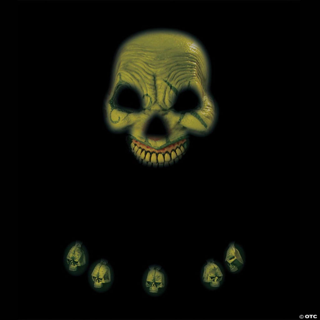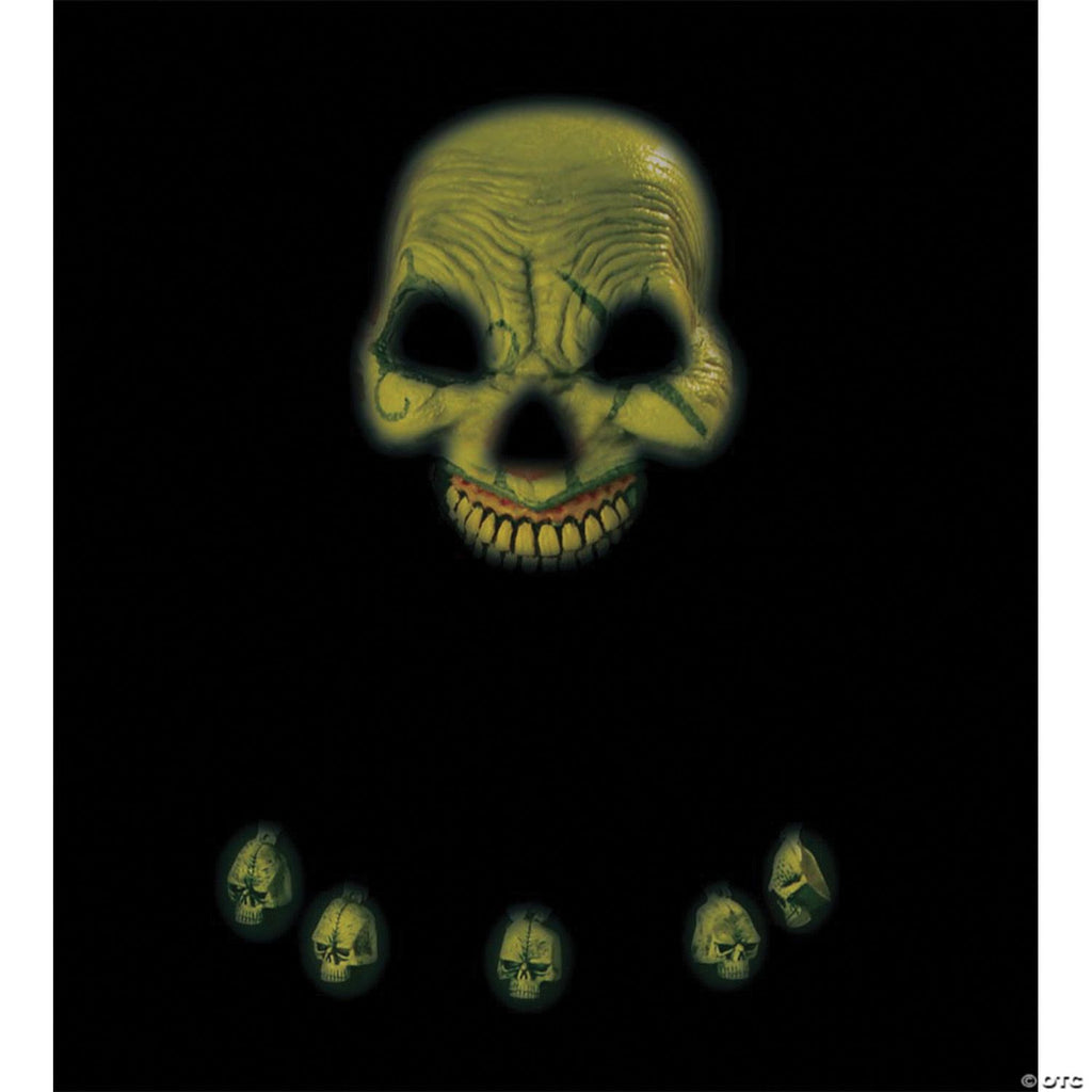 • Glow-in-the-dark mask with attached hairbr