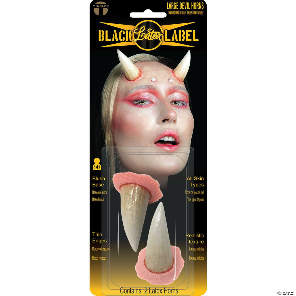 Get a little wicked with these professionally sculpted Large Devil Horns by Black Label Latex! Includes 2 pre-painted bone-colored Devil Horns with a blush base. The pair of horns is good for all skin tones and can be painted with FX makeup (sold separately). • Material: Latex. • Use Acrylbond adhesive or Spirit Gum.