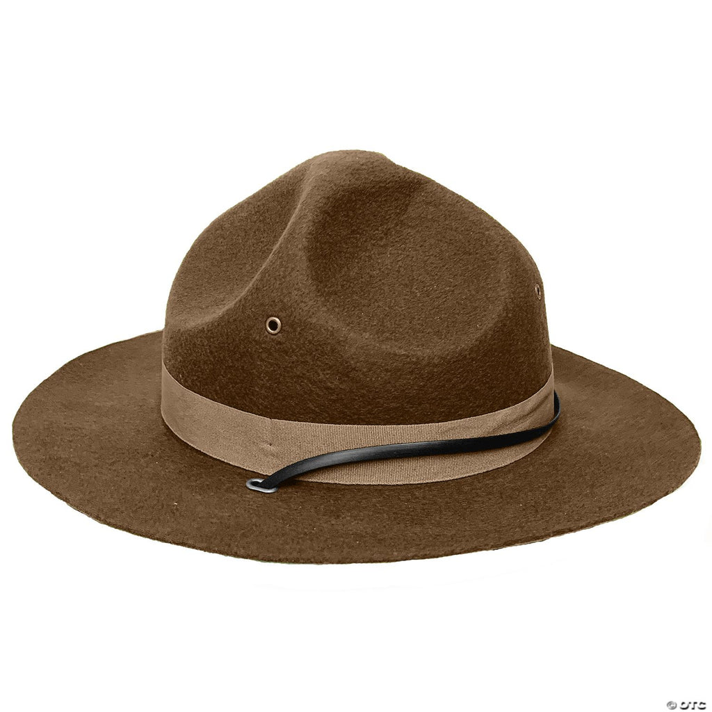 Deluxe felt hat is ideal for Mounties, Policemen Uniforms, Scouts, etc. Superb quality. Brim measures 2 3/4 inches, Crown is 6 inches tall., and Hat Size XL (23 ½" C).
