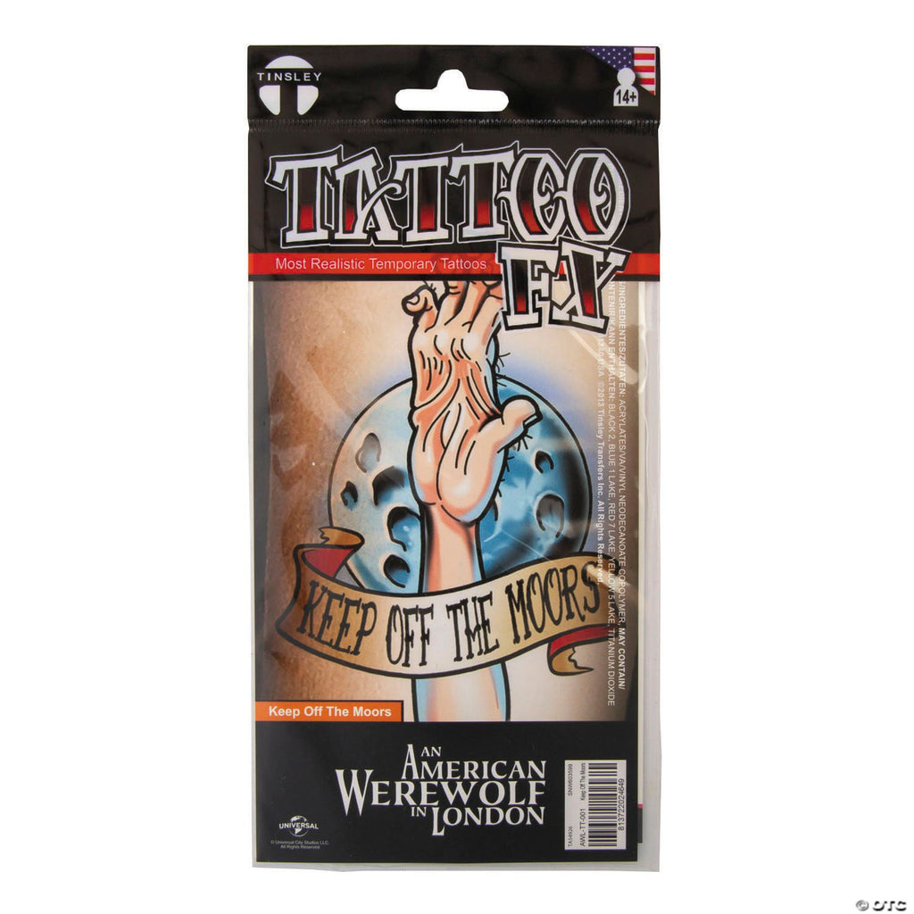 This temporary tattoo features an image of the full moon with a hand in front of it and is inspired by the classic movie An American Werewolf in London™. • Includes one tattoo. • Easy to Apply: Goes on in seconds with just a little water and lasts for days. • Made with non-toxic, cosmetic-grade ink. • Effortless Removal: When you’re ready for a change, simply use rubbing alcohol or baby oil to remove it. • © Universal City Studios LLC. All Rights Reserved.