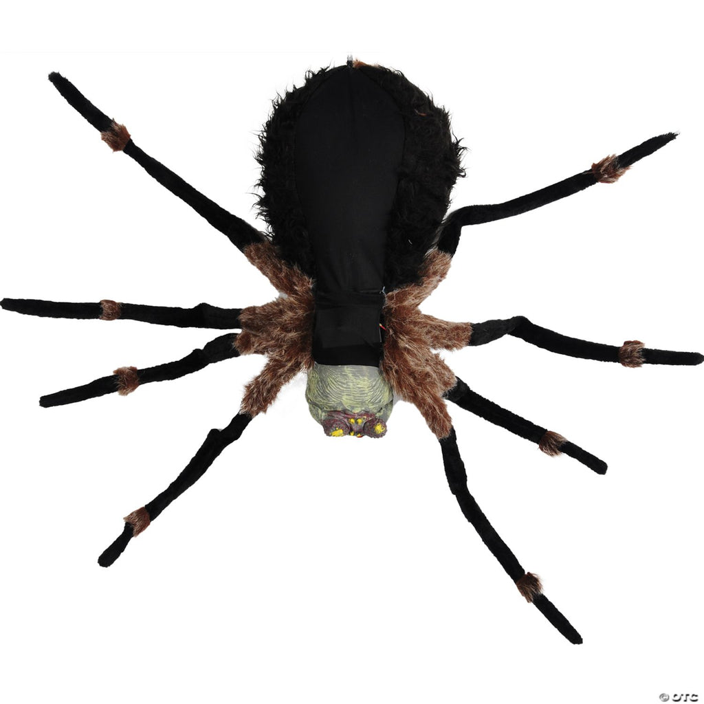 This Spider will make you scream! Features a big round furry body with red light-up eyes long legs with fur tufts at the knees and creepy mouth parts! Includes a hang loop for ease of hanging on your door or the wall! This furry spider will scare the crowd this Halloween! Has approximately 53 inch leg span. Requires 2 C batteries which are not included.