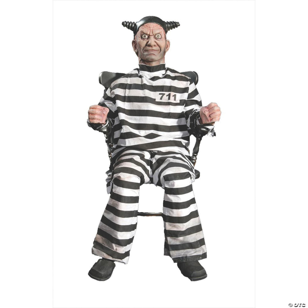 This condemned prisoner has attitude...taunting the crowd as the switch is thrown. All electric (110v) professional animated prop made of foam filled latex. Audio cd included.