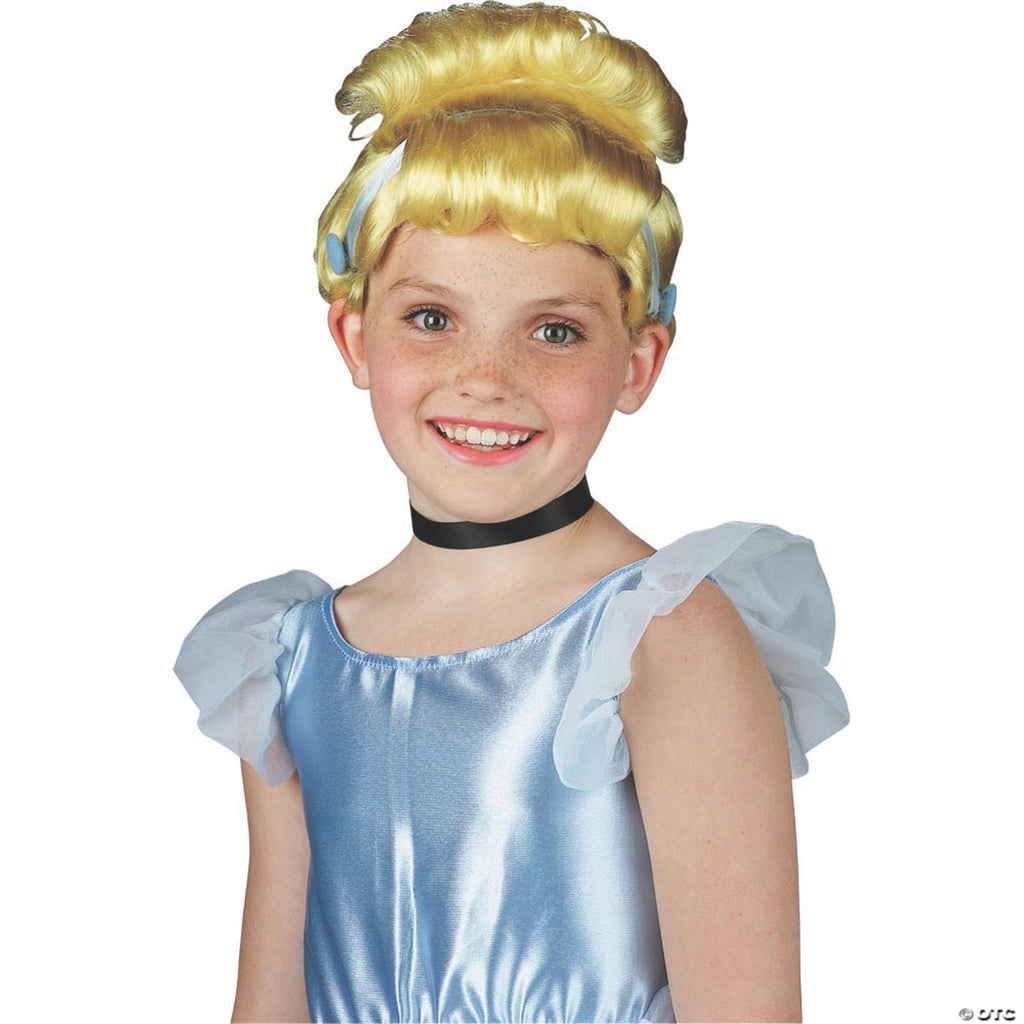Blonde wig done in the traditional Cinderella look with accenting blue ribbion. One size fits most children.© Disney
