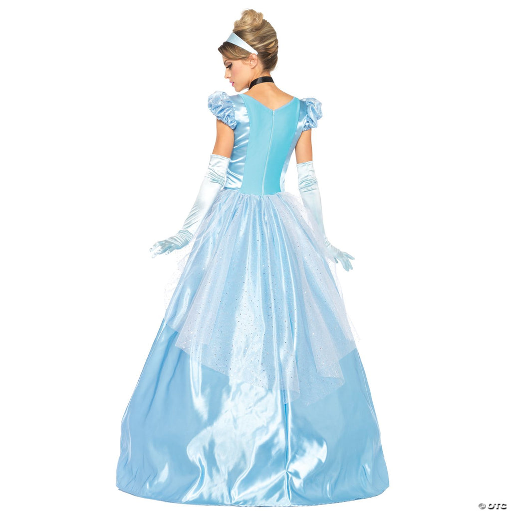 3 PC. Classic Cinderella includes long satin ball gown with glitter tulle accents satin choker and matching headband. Gloves are not included.