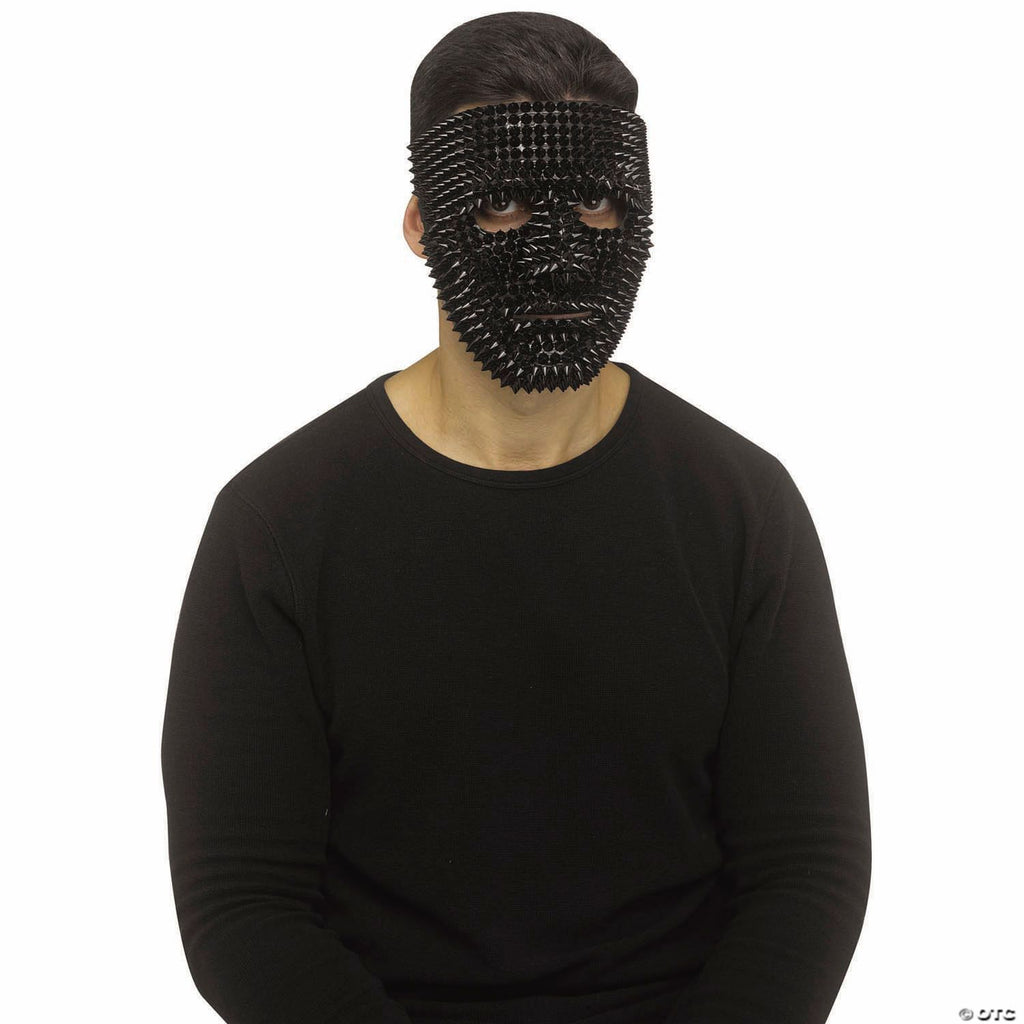 Masks are an easy way to elevate a costume look and this one features a blank black mask with rows of spikes.