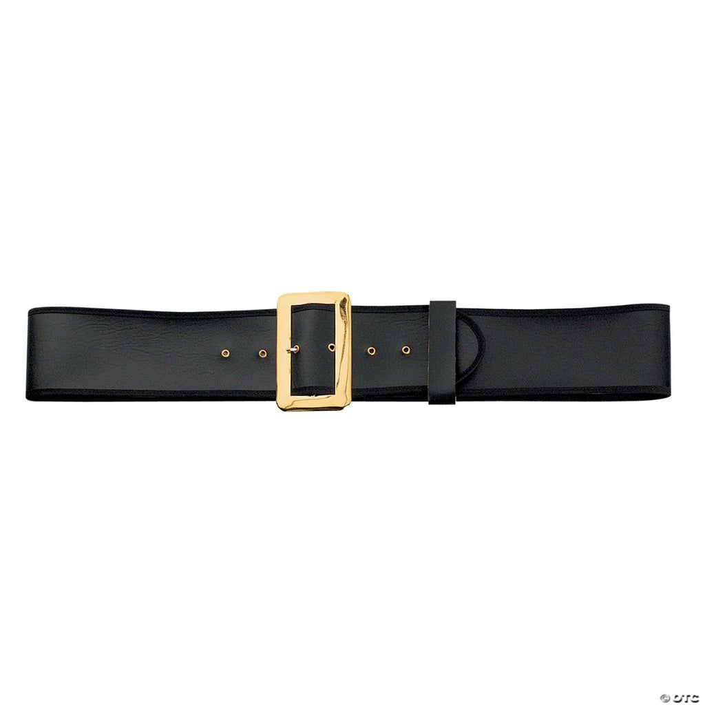 A Deluxe Bound wide Naugahyde belt with a large metal gold gilt buckle with prong. Holes down the center of the Belt have fixed Eyelets to reduce wear against the metal prong. Hemming along the Belt's edge helps protect against fraying ensuring a long-lasting life. The Thick Sturdy Naugahyde is an abrasion resistant material that is sure to hold up for years. XXX Large will fit waist sizes 64-70.