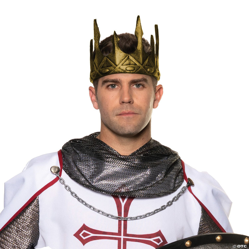 Wear the look of ancient royalty! Out Adult King Crown is a bronzed golden crown with tall spikes and angular medieval-look styling. It's the perfect way to top off your regal costume and is a great grab for medieval-themed parties, trick-or-treat outings with the family, fall festivals and much more. Crown is adjustable and will fit most adults. Made of lightweight foam for a comfortable fit. Perfect finishing touch to your royal costume!