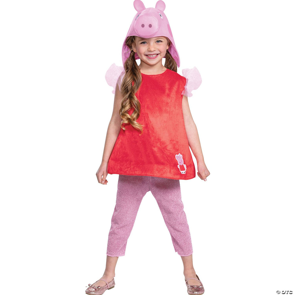 Peppa Pig Classic Costume includes a Character Top, Matching Leggings and Soft Headpiece. The Comfortable Pink Top has the familiar Peppa Pig Logo near the hemline, ruffles at the shoulders, and a Detachable Curly Tail. Officially Licensed Peppa Pig prod