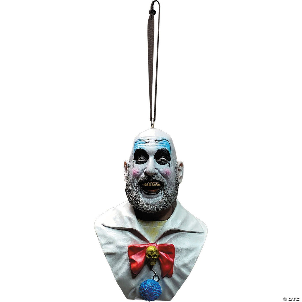 The Officially Licensed Holiday Horrors Captain Sapulding ornament from the cult classic horror movie House of 1000 Corpses. Each immaculately painted resin ornament is detailed to perfection. The piece is featured in a graphic display box with clear vinyl window to highlight its unique and detailed design. Included is an attached ribbon so you can hang the bust in a variety of settings ranging from your Car to your Home or Office. Make an impact with an iconic instantly recognizable character painted to perfection and durable enough to enjoy for years!