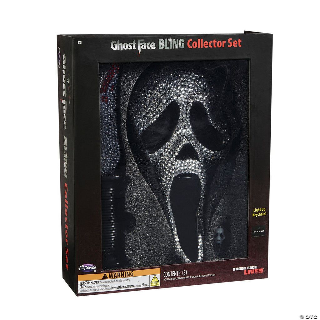 This exclusive Ghost Facesup®/sup collector set is officially licensed and is the perfect collectible gift for the ultra-fan or avid collector. Each display box holds a plastic knife with rhinestone bling in white and red rhinestones that resemble dripping blood, a mask covered in rhinestone bling with attached black hood, and a plastic light-up Ghost Facesup®/sup keychain. Gift it to friends or family or add it to your own collection! GHOST FACE protected under worldwide copyright registration, and is the exclusive property of Fun World Div., Easter Unlimited, Inc. All Rights Reserved. GHOST FACE, GHOST FACE LIVES and THE ICON OF HALLOWEEN are registered trademarks of Fun World Div., Easter Unlimited Inc. All Rights Reserved. Fun World is a registered trademark of Easter Unlimited, Inc. All Rights Reserved.br