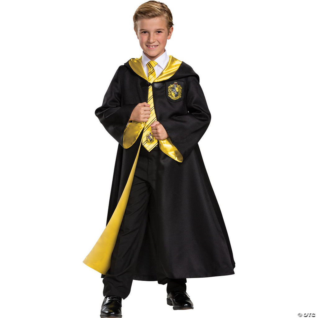 Create a truly magical experience when you step out into the wizardly world dressed in the Child’s Hufflepuff Prestige Student Robe. Now you can dress as a student of the Hufflepuff house known for honesty, dedication and hard work. in this enchating costume. Grab your magic wand and transform into your favorite Hufflepuff student Nymphadora Tonks or Cedric Diggory. The Harry Potter Child’s Prestige Hufflepuff Robe features a black robe with Hufflepuff crest and yellow satin lined hood, sleeves and lapels. Pants, white shirt, tie, wand and shoes not included.HARRY POTTER characters, names and related indicia are © 2020 Warner Bros. Entertainment Inc. WB SHIELD: © 2020 WIZARDING WORLD trademark and logo © 2020 Warner Bros. Entertainment Inc. Publishing Rights © JKR. (s19)