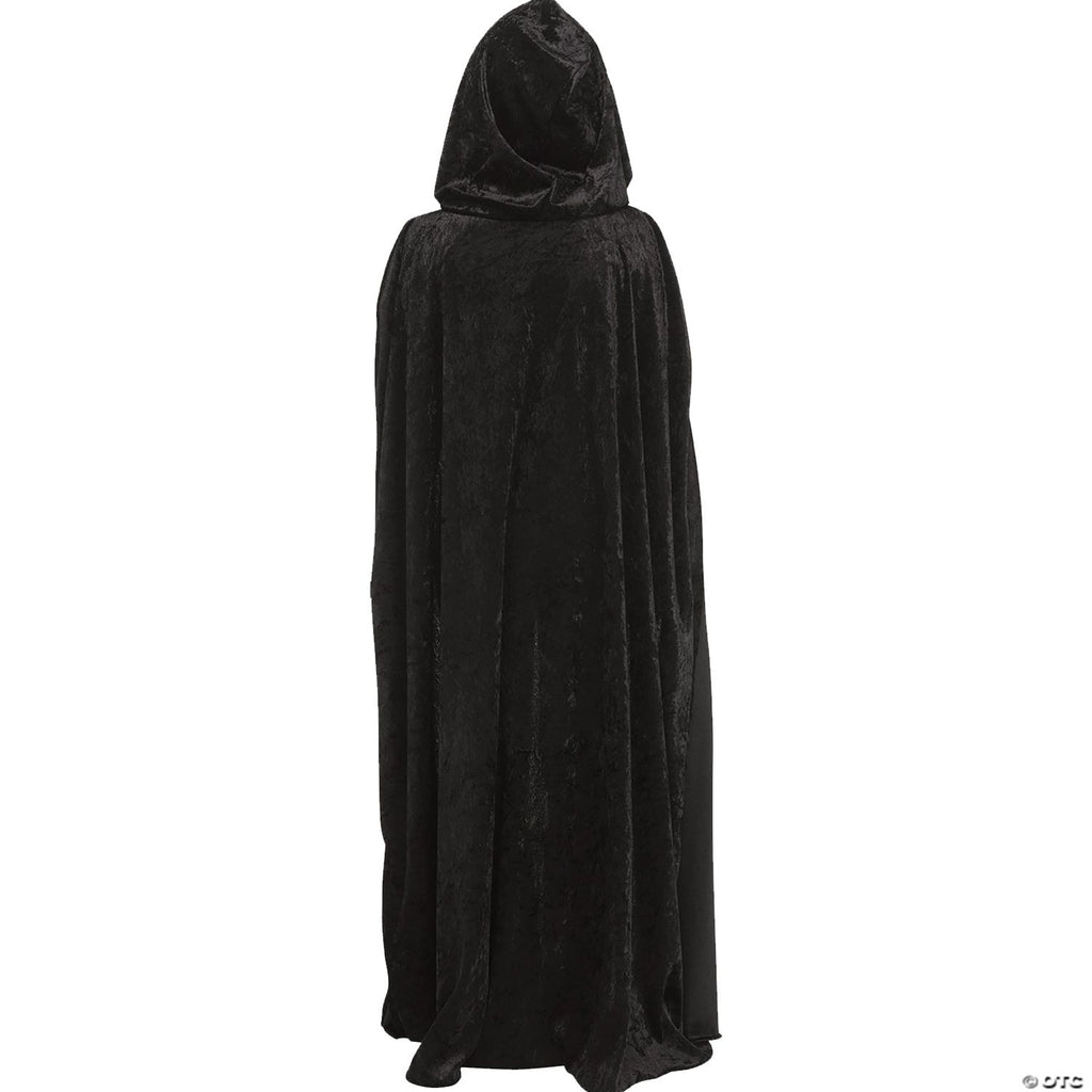 Lovely Hooded Velour Black Cape will be a great add-on to many costumes! Rich velour fabric will add a luxurious accent to your witch or sorceress costume, and the full length front-closure cape will flow gracefully when you walk. Also looks very pretty with a black shirt and pants, as shown. Many possibilities! One size fits most children up to size 14.