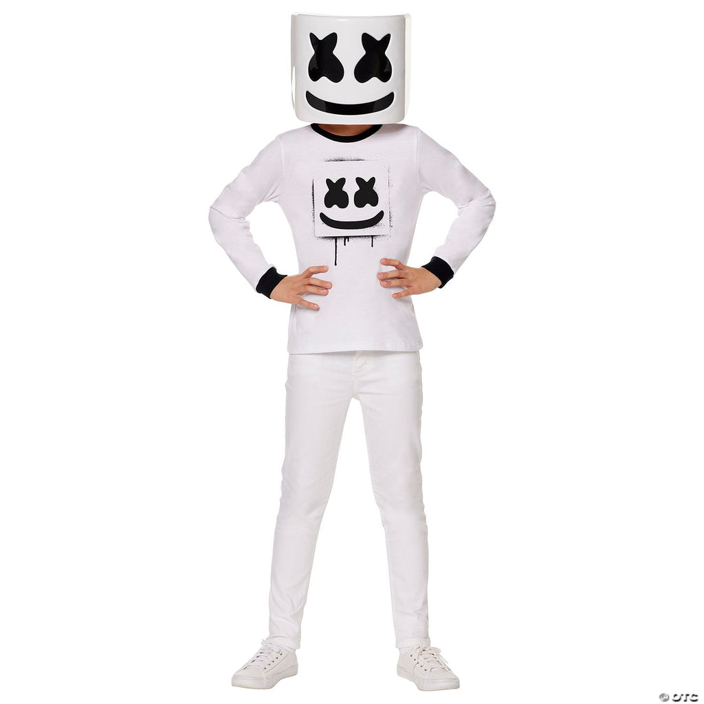 Keep the crowd moving to the beat all night long when you show up to the party wearing this officially licensed Marshmello Kids Costume! Everyone will be wondering "who's under that mask?" once you show up wearing our Marshmello mask and matching shirt. Our Kids Marshmello Costume includes a long-sleeved polyester shirt that is printed front and back and a molded plastic character half mask with mesh eyes for visibility. Hand wash cold, air dry. Do not bleach, do not dry clean. Pants and shoes are sold separately. All trademarks and copyrights are the property of Marshmello Creative, LLC.