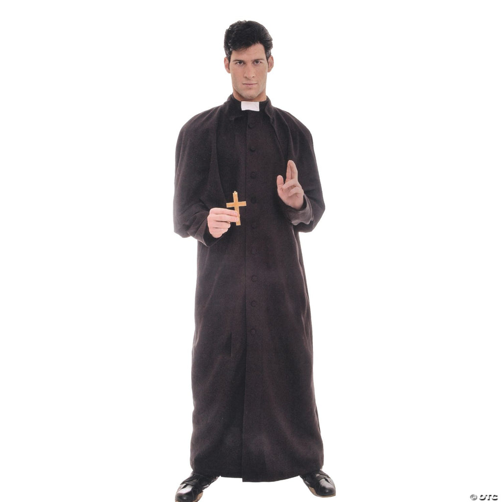 Traditional black tunic with white collar. Polyester. One size fits up to size 44.