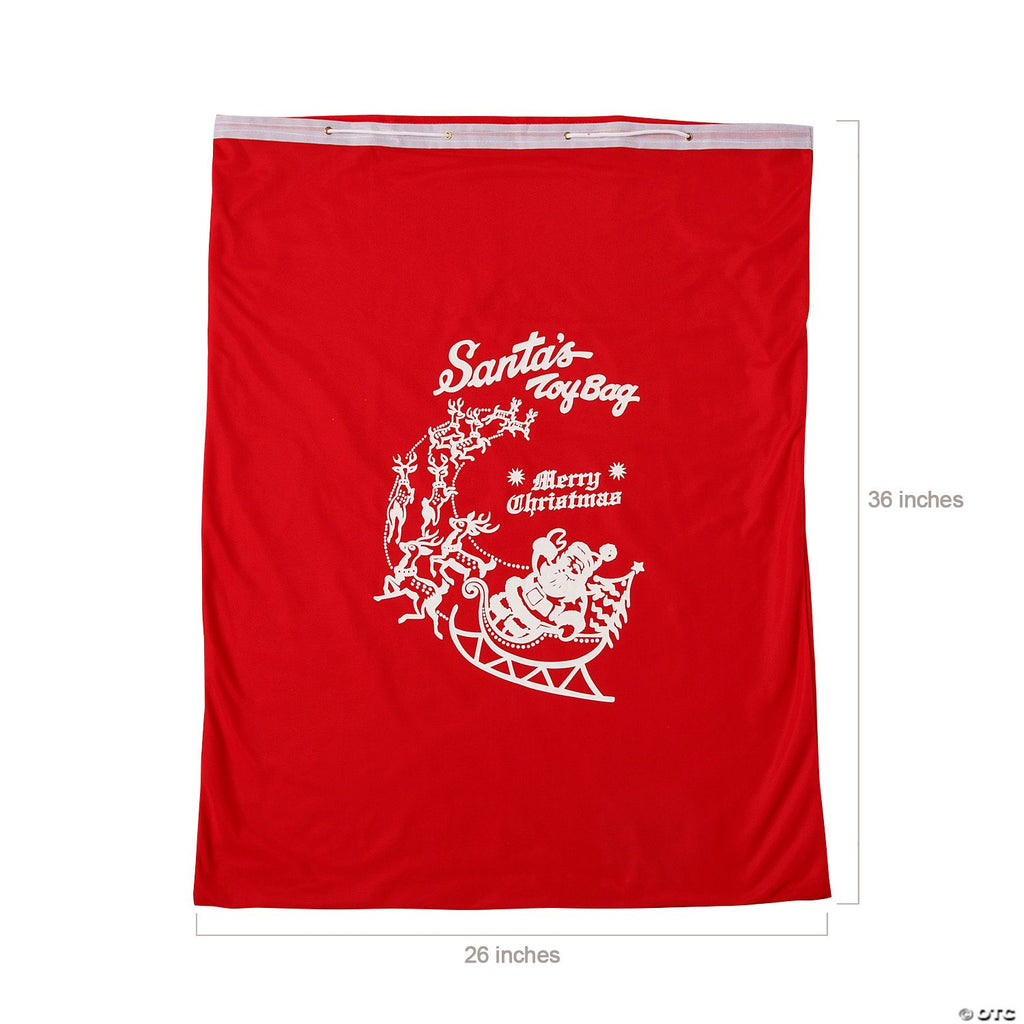 Looking for a place to stash your extra-large holiday gifts? Look no further than this Santa toy bag! This festive bag is made of red tricot fabric with a white drawstring closure and features a stenciled design of Santa, his sleigh and reindeer with "Santa's Toy Bag" and Merry Christmas" messaging. The size of the bag easily accomadates larger presents and the soft fabric will keep your gifts safe and sound. Can be reused year after year! Pair this bag with your Santa Claus costume as you head to your Christmas party, workplace celebration or holiday gathering and get ready to spread some merriment and joy.