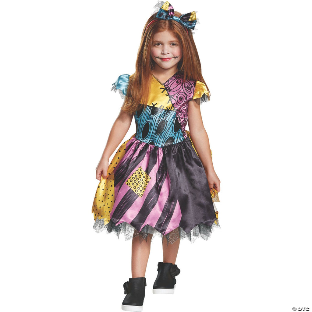 Your little one can look just like Sally, her favorite character from A Nightmare Before Christmas with this great ragdoll inspired costume. The Nightmare Before Christmas Sally Classic Infant and Toddler Costume features a multi-colored patchwork print dress with jagged hemline and black sparkly tulle. Also comes with headband with bow. Shoes and face makeup not included.© Disney