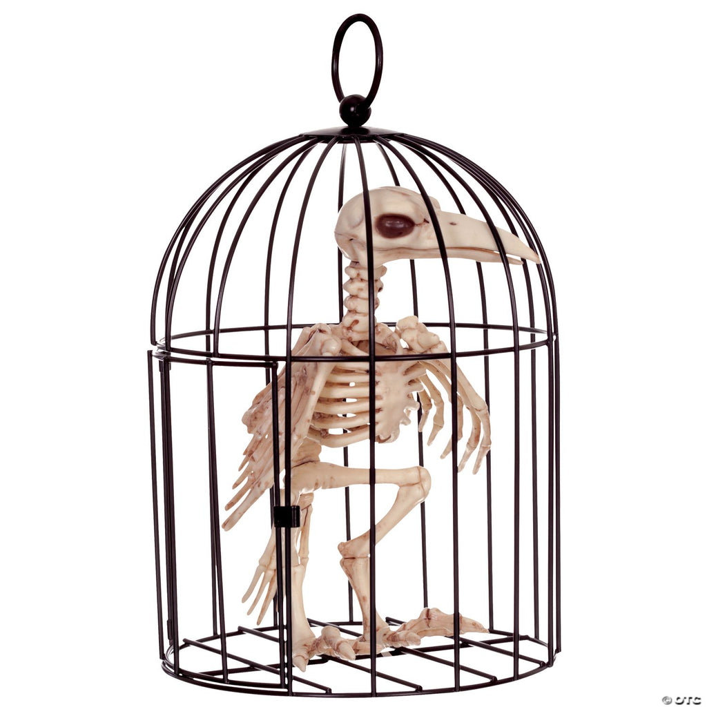 Add an air of mystery and macabre with this Skeleton Crow in a Cage. Just what you need for your next haunted scene! Approximately 9.5 inches tall.