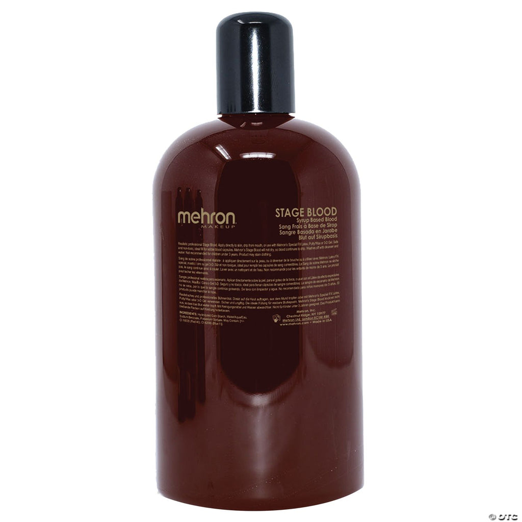 Our viscous, life-like blood is non toxic and so safe, it's, edible. Can be used in and around the mouth and will wash, off with soap and water. Caution: red pigment may stain skin, hair, and clothing.5 oz and 1 oz.