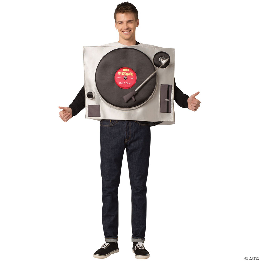 Vinyl's back and now so is the turntable! One piece tunic, fits most adults (up to men's chest 46 inch wide) printed on front only. 100% polyester.