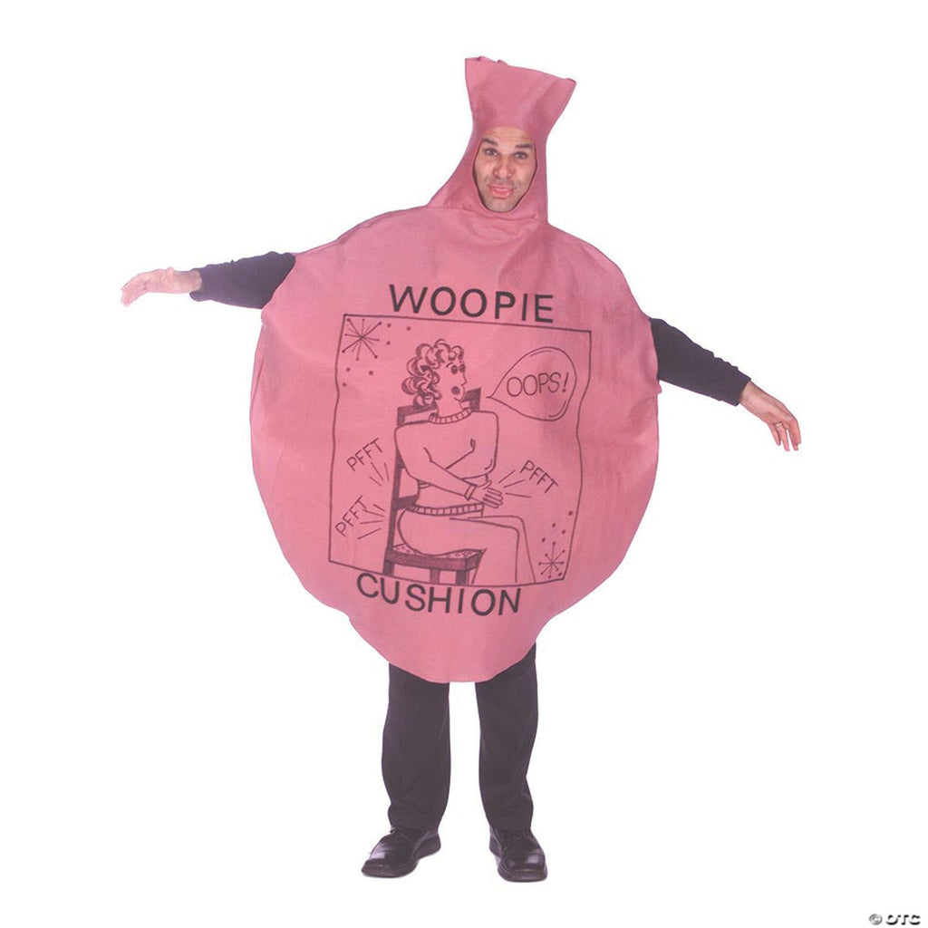 The famous woopie cushion 100 percent polyester felt with silk screened woopie cushion artwork. One size fits most.