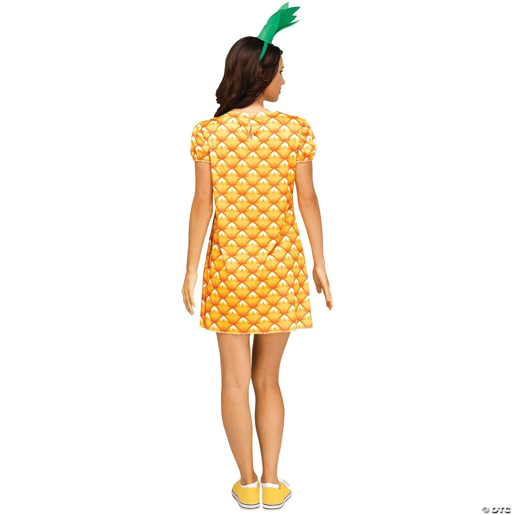 If you wants to be as refreshing, wonderful and sweet as a fresh pineapple, you may want to wear this great Fun Fruit costume with realistic pineapple graphic! Includes colorful dress and headband. Sunglasses and shoes not included.