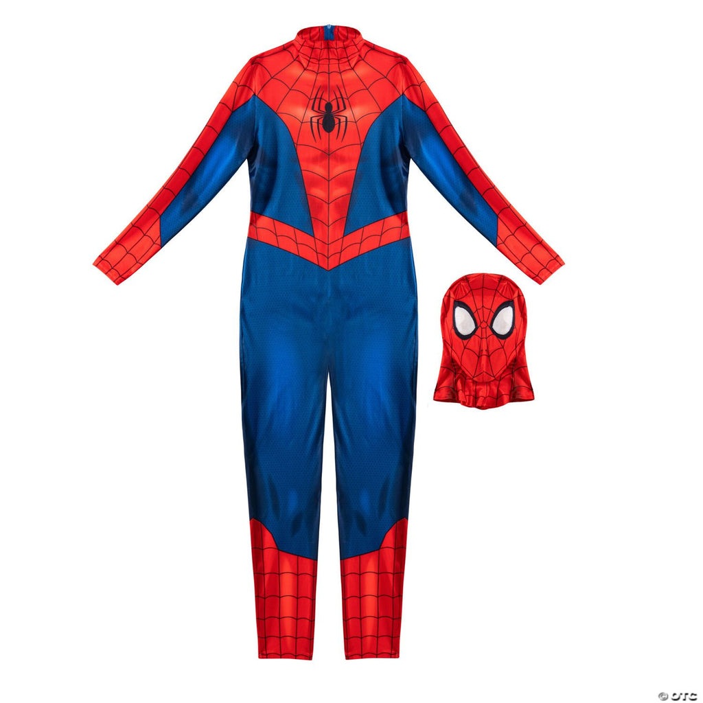 Swing into action with the MARVEL Spider-Man Adult Woman Zentai Suit. Featuring a printed design of Peter Parker's classic spider suit, this long-sleeved form-fitting jumpsuit is made of two way stretch spandex. It includes invisible zippers in the front and back plus wrist openings for hand access. It also includes a full spandex overhead mask with ponytail opening. All Zentai suits are made from high-quality spandex with high-resolution prints. Jazwares Costume Play creates costumes for Halloween and everyday play that are made for every member of the family. Officially licensed MARVEL product from Jazwares.