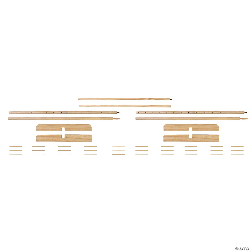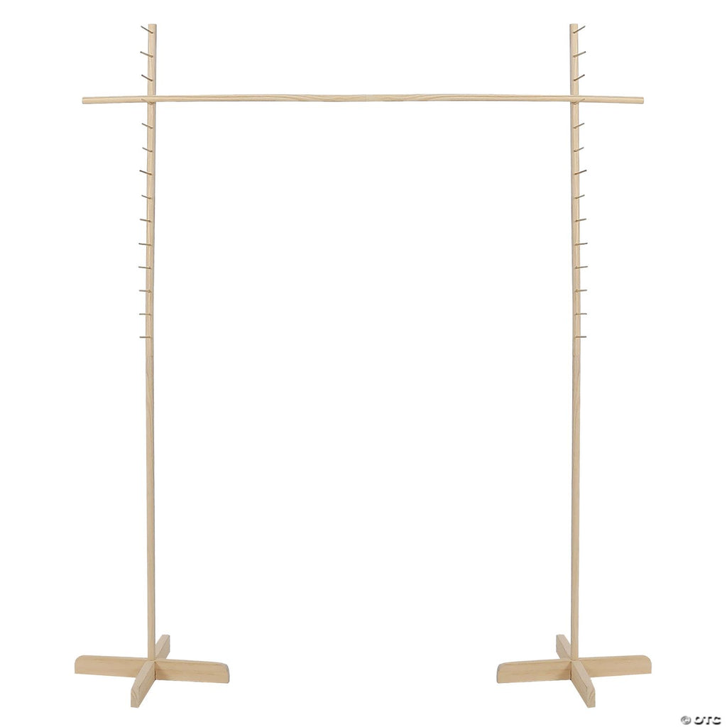 Set this Fun Limbo Game up and watch the excitement begin! A perfect addition to any party especially with some festive dance music playing!When fully assembled,the 2 Limbo poles with bases stand5 ft high, each with 14 peg holes about 2 inches apart;the Limbo Crossbar is 47 inches long, andthere are 28 peg dowels included,The Game set is made with sturdy joints to keep free-standing poles in place. Both poles and crossbar are 2 pieces that screw together for compact storage. 39 total pieces. Easy assembly. Paint or personalize the light-colored wooden set to your liking!