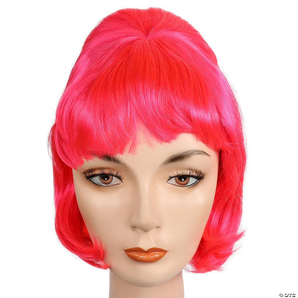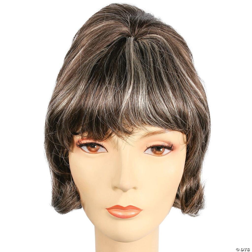 Here's the tall teased-crown 1960's look with the turned-under chin-length style with bangs and that cute spit curl on each side!