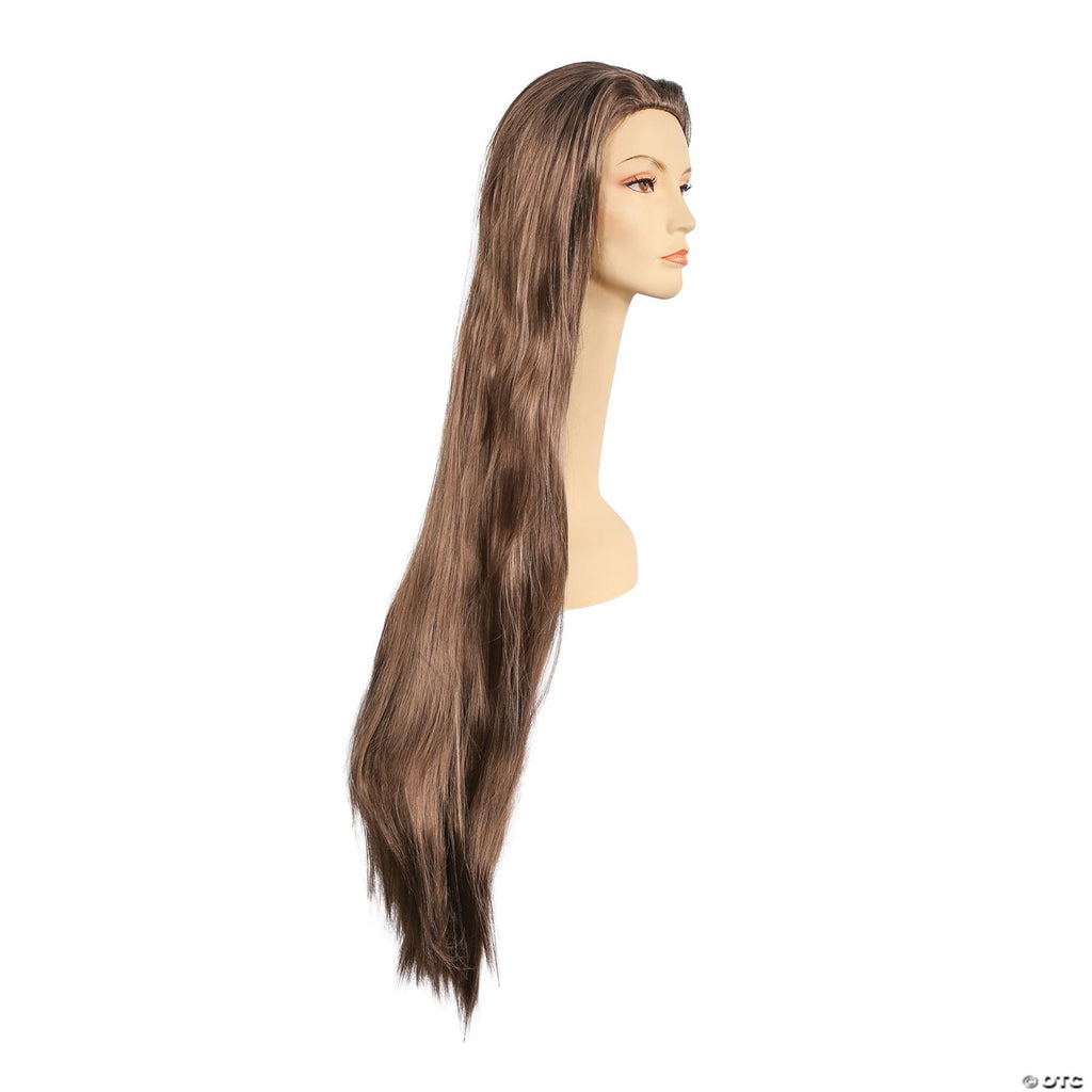 Long full style with a skin front but without bangs. Measures over 40 inches.