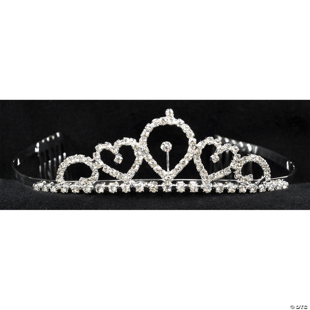 All metal child-size tiara with gorgeous rhinestone detailing. Beautiful ornate styling gives these creations a luxurious look for a very affordable price. Has metal combs to hold them in place.