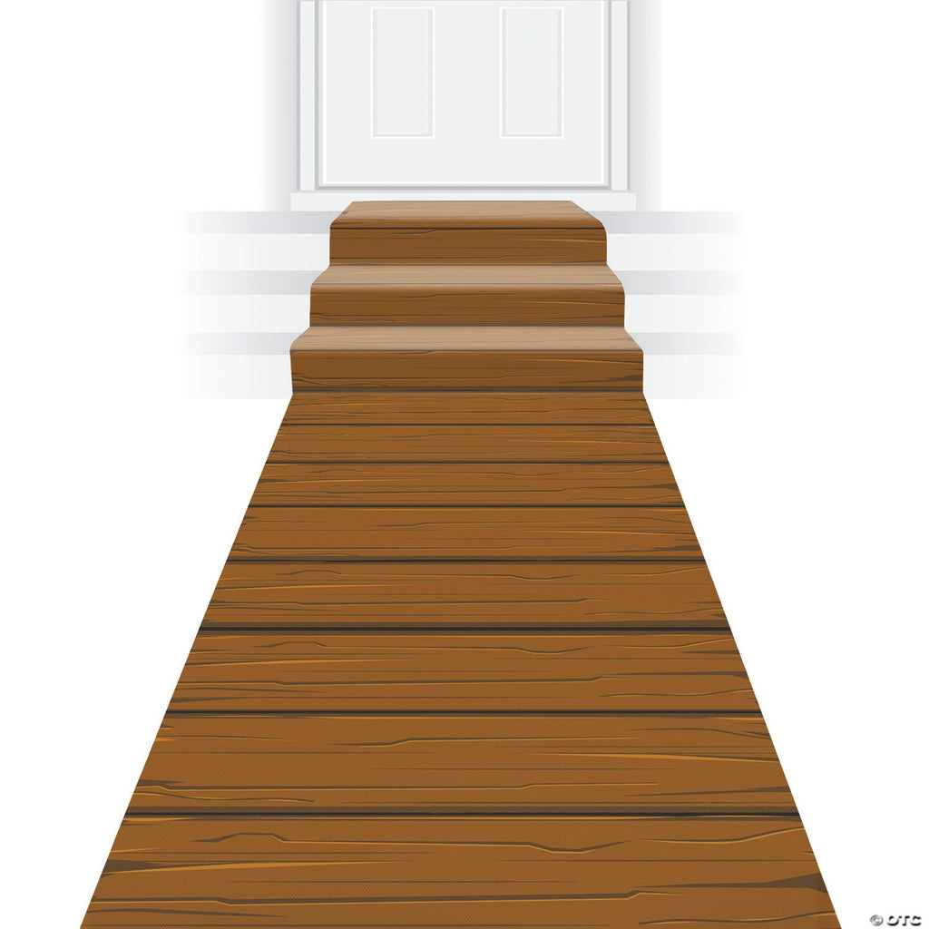 This aisle runner features a wooden plank print in brown that includes a wood grain detail. Enhance party decorations for an entryway or photo booth with this fabric runner that is perfect for use indoors or outdoors. Includes double-sided tape.