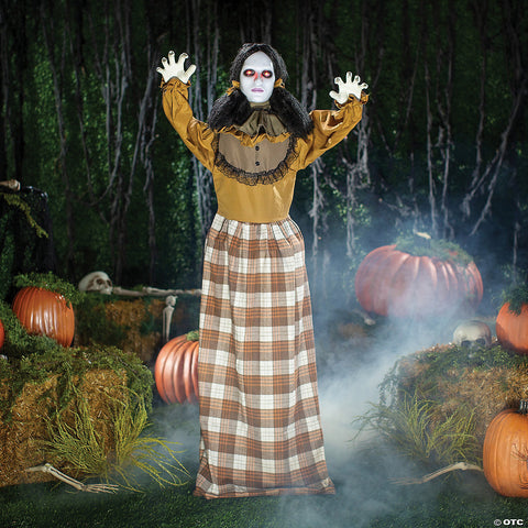This 5 Ft. Standing Creepy Woman is the perfect guest to elevate your Halloween décor from tame to terrifyingly terrific! Surprise and enchant Halloween party guests and trick-or-treaters with this animated Halloween decoration standing guard over your ghostly gatherings and moonlit festivities. Her towering presence, cloaked in the shadows of the night, brings a chilling depth to your haunted house atmosphere. With batteries bringing her to life, she promises an eerie interaction that will have your guests talking long after the witching hour has passed. Looming at an imposing height, she's not just a decoration but a statement—an uncanny blend of horror and hilarity that's bound to be the centerpiece of any Halloween hullabaloo. Requires batteries.br