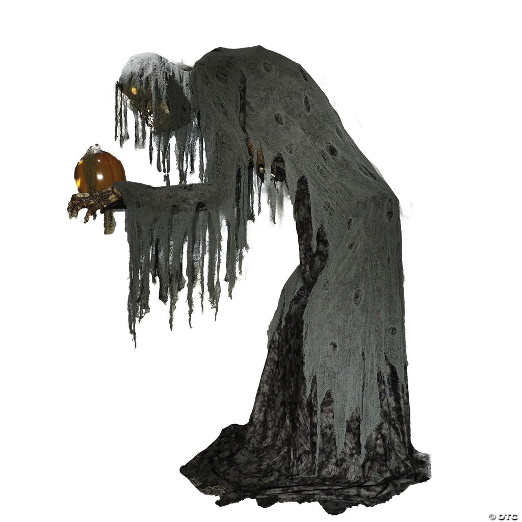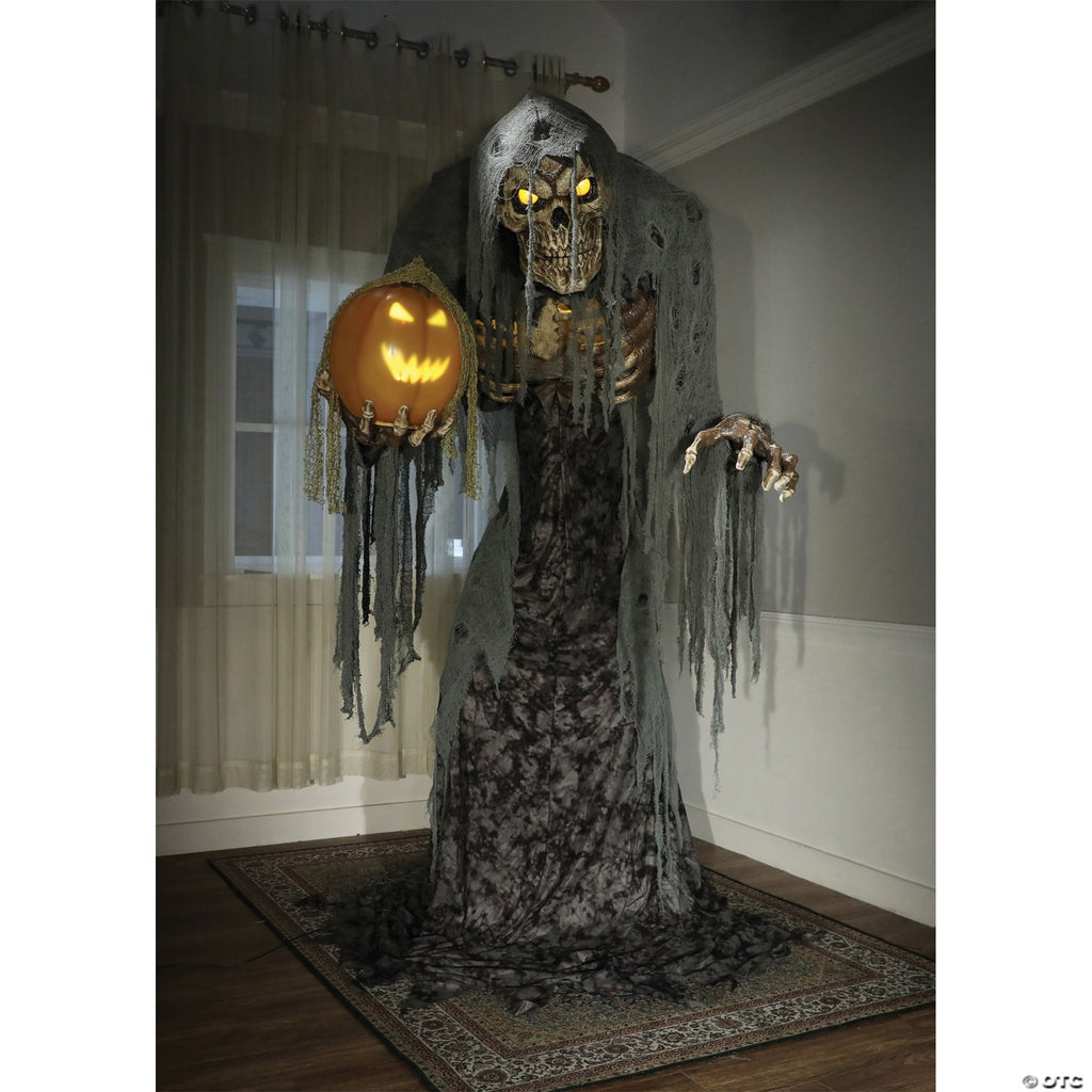 Jack Stalker Animated Prop is a hunchbacked Skeletal Creature cloaked in a rotting raggedancient-looking robe with dangling shredded gauze that moves with every spooky breeze! He patiently waits for victims to come closer before he begins to speak in a spine-chilling Voice. Clutched in his right hand a bright Orange Pumpkin comes to life with an Inner Projection Light that illuminateshis Jack O Lanternface that moves when he speaks!Together they mock people and banter between each other while searching for souls and brains to steal. Jack Stalker's Eyes and Chest lightup and his Jaw moves while he speaks. His left arm moves back and forth to emphasize his words. Animated Prop can be activated either through an infrared motion sensor or step-here pad and can be set to run continuously for scares that never end! They speak many phrases that will draw attention and bring people close, a perfect attention getter for haunted houses or storefronts!Assembly is a quick and easy. Everything you need for set up comes in one package, simply snap together the quick connect poles, click the electrical connections and plug in to the wall! Ready to use!
